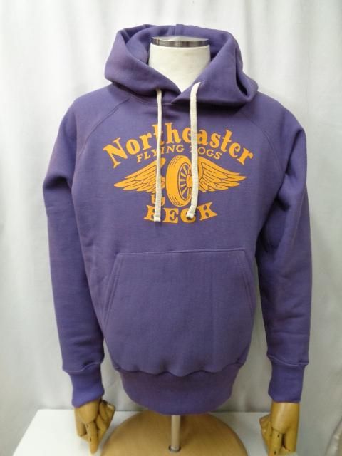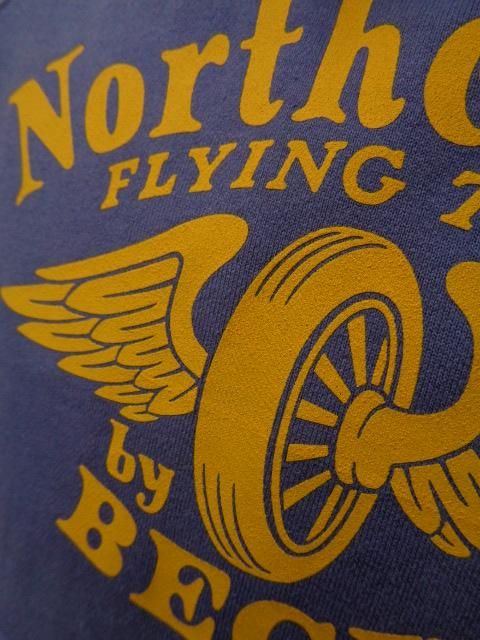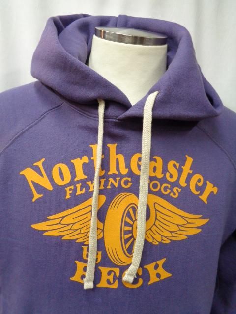 今季、新たなレシピを採用し、旧式の吊り編み機で作成した、丸胴のヘヴィ-ウェイト・スウェット生地を用いたプルオーヴァーパーカに、”BECK Northeaster"の文字とフライングホイールロゴを立体的にプリント。ノースイースターとは東海岸に吹く強い北東の風を意味する。転じて、強風をものともせずに前へ進むことが出来るギアを提供する、という強くて頼もしいブランドをアピールしているのだ。