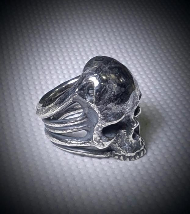 これぞM.O.Sの真骨頂。リアルとデフォルメの融合が織り成す禍々しくもリアルでありながら、ユニークさも兼ね備えた他に類を見ないスカルリングとなっております。