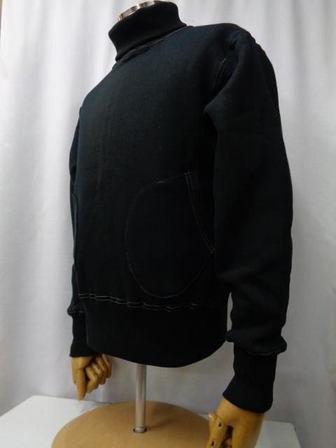 クッシュマンの定番の吊り編み機で織られたセットインスリーブスウェットボディを使った、タートルネックセットインスリーブスウェットです。