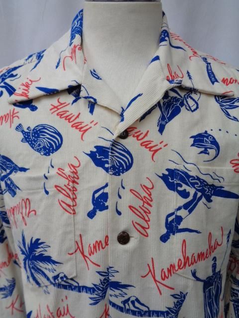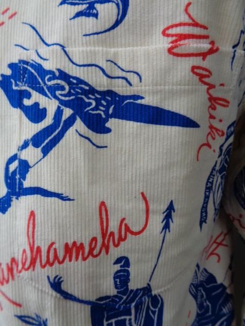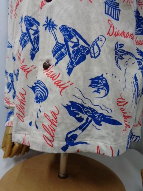 その”HISTORICAL EVIDENCE” の柄を冬素材のコーデュロイオープンシャツに落とし込んだ冬用アロハシャツです。コットン製のためレーヨンよりも取り扱いが容易で、レーヨン素材とは異なる経年変化が楽しめます。
