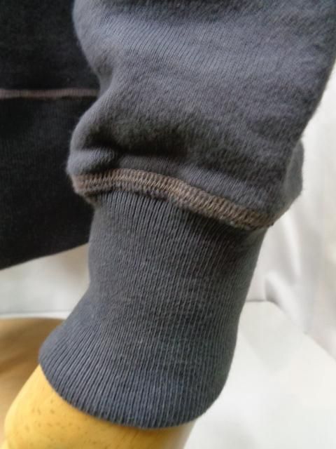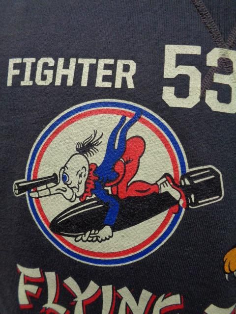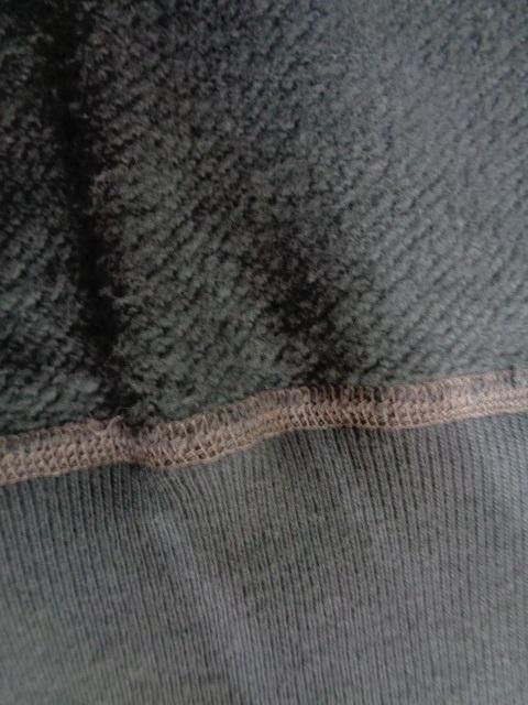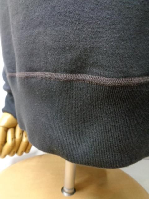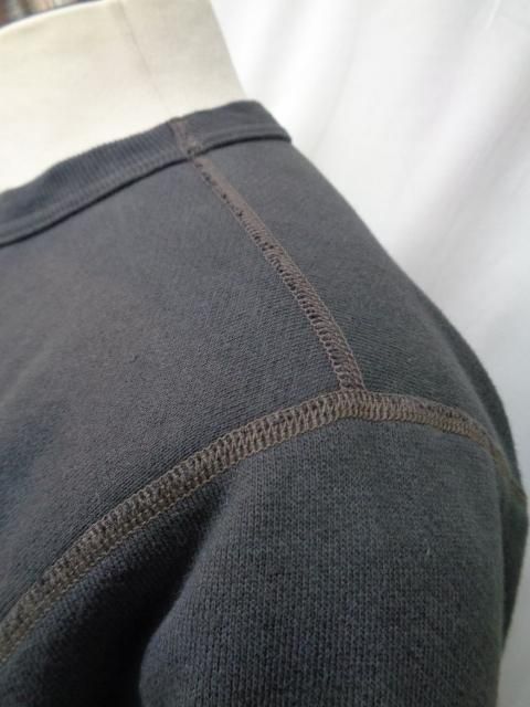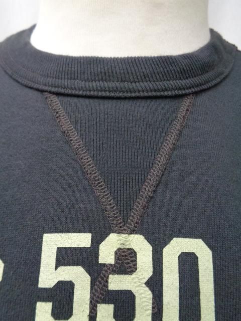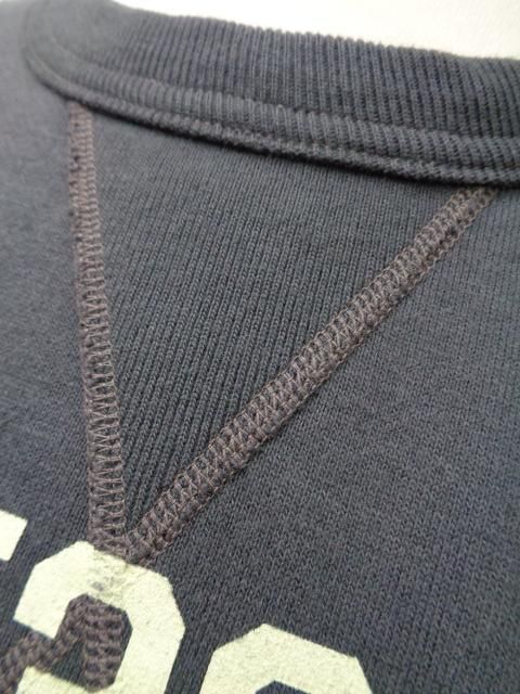 ウールニットの素材からループ状の裏起毛を持つコットン素材に生まれ変わり、“汗を吸うシャツ”として米国民のデイリーウェアとして進化を遂げたスウェットシャツ。ハードなトレーニングを日常とする軍や士官学校もいち早く目を付け、全米に点在する基地売店でも扱われるようになった。素材は当時と同じように不均一なテンションで編み込まれる筒状の吊り編み機を使用しているため、特有の柔軟性を持つ素材である。縫合は肌着などに適した4本針のフラットシーマによるもので、V字型のガゼットは身頃の上にリブ素材を乗せて縫い付けた、通称“叩き付けV”の仕様。