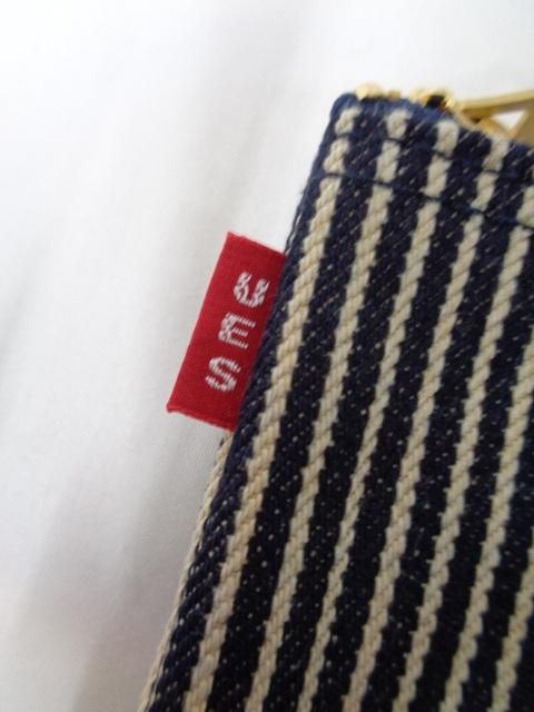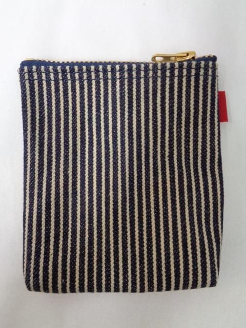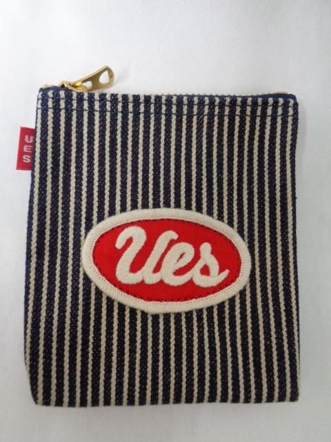 UES定番のZIPポーチ。生地は緯糸に茶綿を混ぜ込んた糸を使用したヒッコリー生地。使い込むことで味わいが出てきます。