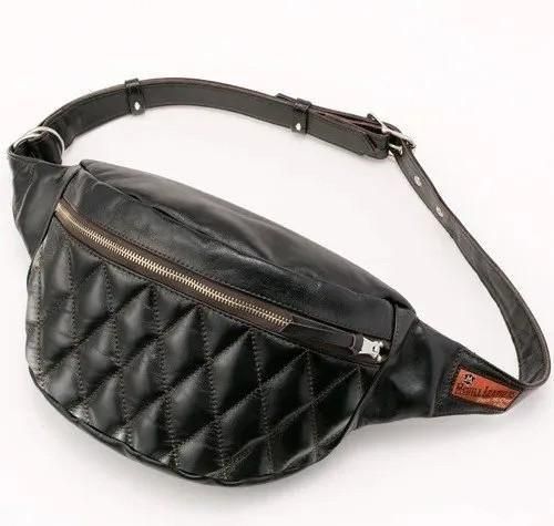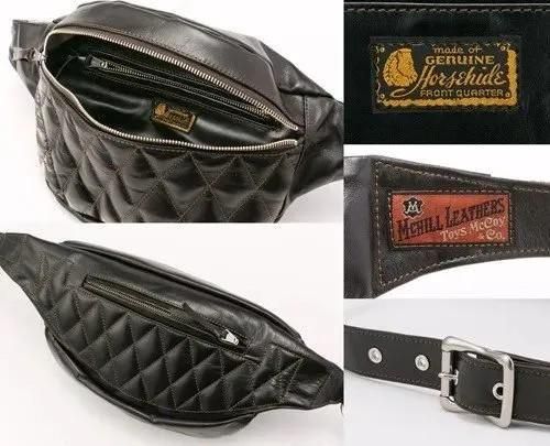 ウエストバッグ、袈裟懸けのボディバッグと2WAYで使えるホースハイド製のレザーバッグ。体に当たる内側にキルティングパッドを設けることで、長時間の装用でも疲れや痛みを感じさせないよう配慮。今回フロントパネル全面に大型のダイヤモンド型キルティングパッドを施し、見た目もインパクト大なバッグに仕上げた。