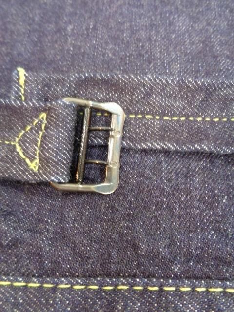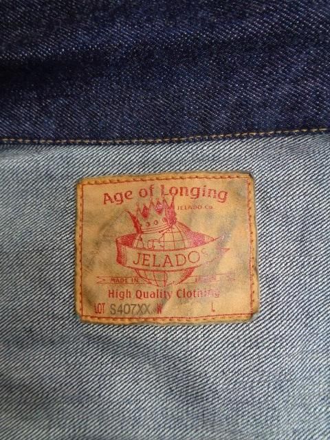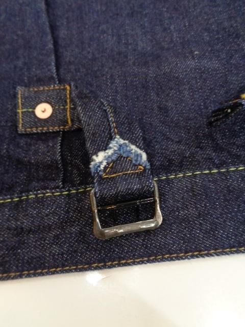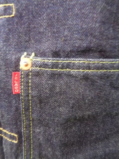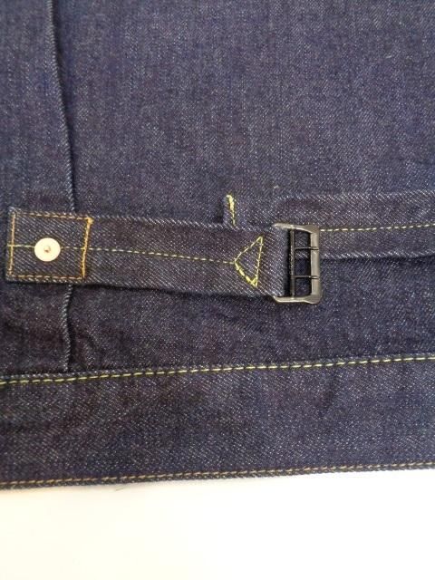 ロープ染色はデッドストックを参考に深みのあるピュアインディゴで染め上げ、TOYODA G3織機で経68本×緯47本の打ち込みを施し、しなやかで滑らかな穿き心地を実現しました。デザインは、弊社所有のS506XX初期型をベースに、当時の大戦モデルの雰囲気を忠実に再現。通常ラインで使用される刻印入りの付属を再現し、ポケットにはフラップを付けず、シンプルな1stモデルの仕様を踏襲しています。30年代から使用されていたリベットの在庫をそのまま流用したという設定のもと、「JELADO Co」の"o"を小文字にした特注リベットを製作。尾錠も30年代のバックルを型から再現し、鉄製で仕上げました。