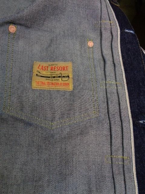 約5年の歳月を経て、LASTRESORT DENIMの最高峰となる金タグを使用した大戦モデルを完成させました。本作は、1942年8月にWPB(War Production Board=軍需生産本部)が物資統制のために出した法令「L-181」に則り、当時の工場が「Simplified Model」として生産していた可能性を踏まえて製作。弊社所有のDEADSTOCKデニムを解析し、国の検査機関で素材データを取得。その数値に基づき、糸の撚りや打ち込み本数を調整し、現存する最古の織機であるTOYODA G3を使用して再現しました。